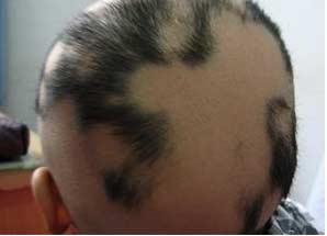 7、蛇行样秃发:斑秃区的毛球呈现萎缩状态,仅能生长极短而细的软毛,容易再脱,呈此起彼伏蛇行样秃发,病程漫长,迁延不愈。