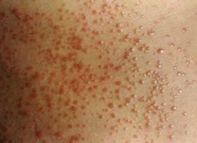 1、人工荨麻疹(皮肤划痕荨麻疹):患者在搔抓后,或在紧束的腰带、袜带等局部起风团,瘙痒。
