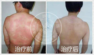 【疾病症状】腿部瘙痒严重,有血液渗出,并且有蔓延趋势。既往史:海鲜过敏。
